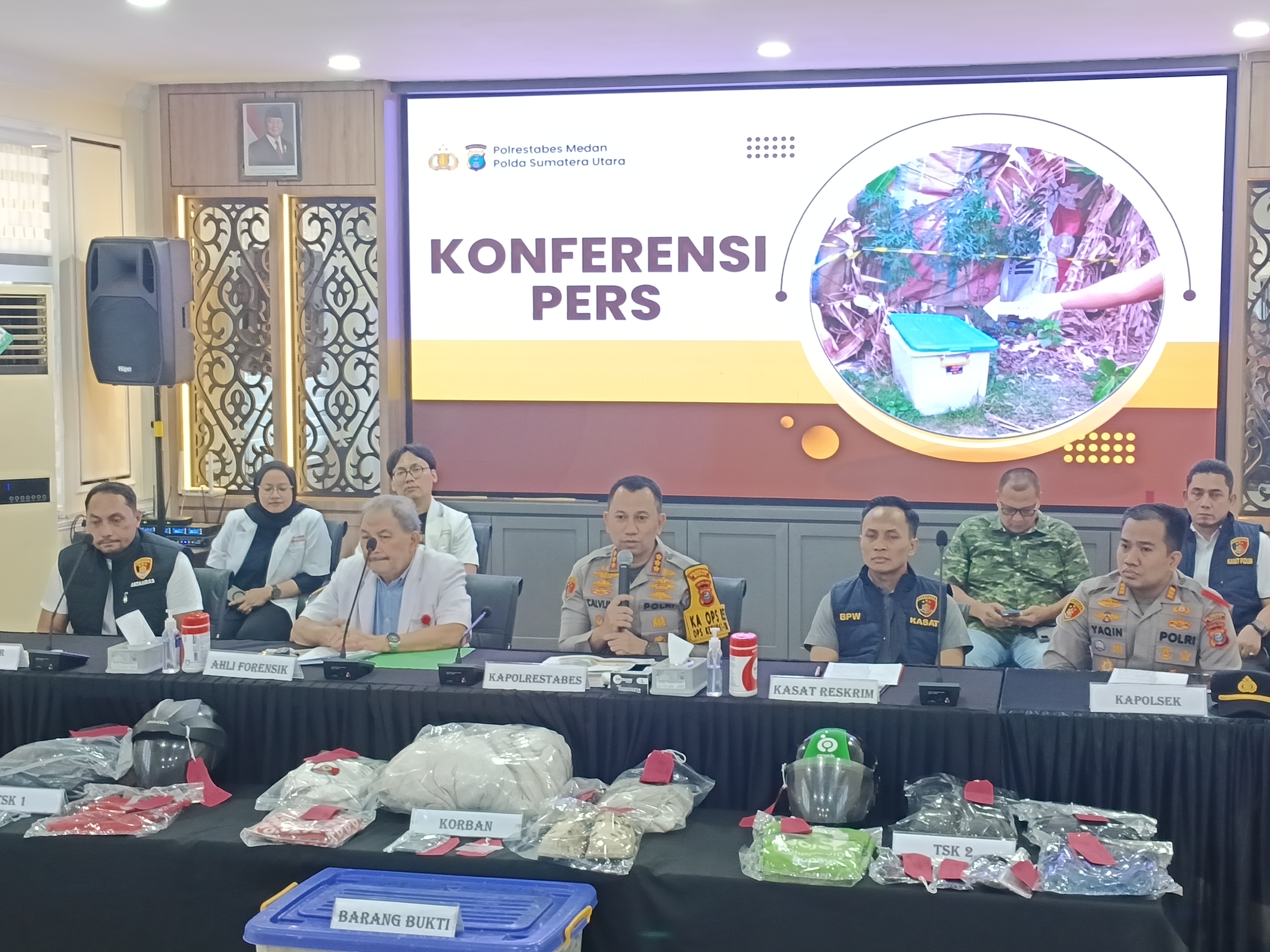 “Di TKP ini terjadi tiga jenis tindak pidana. Yang pertama pembunuhan, kedua pencurian dengan kekerasan, dan yang ketiga kekerasan seksual,” kata Calvijn saat memaparkan ungkapan kasus tersebut di Gedung Rupatama Mapolrestabes Medan, Selasa (17/3/2026).