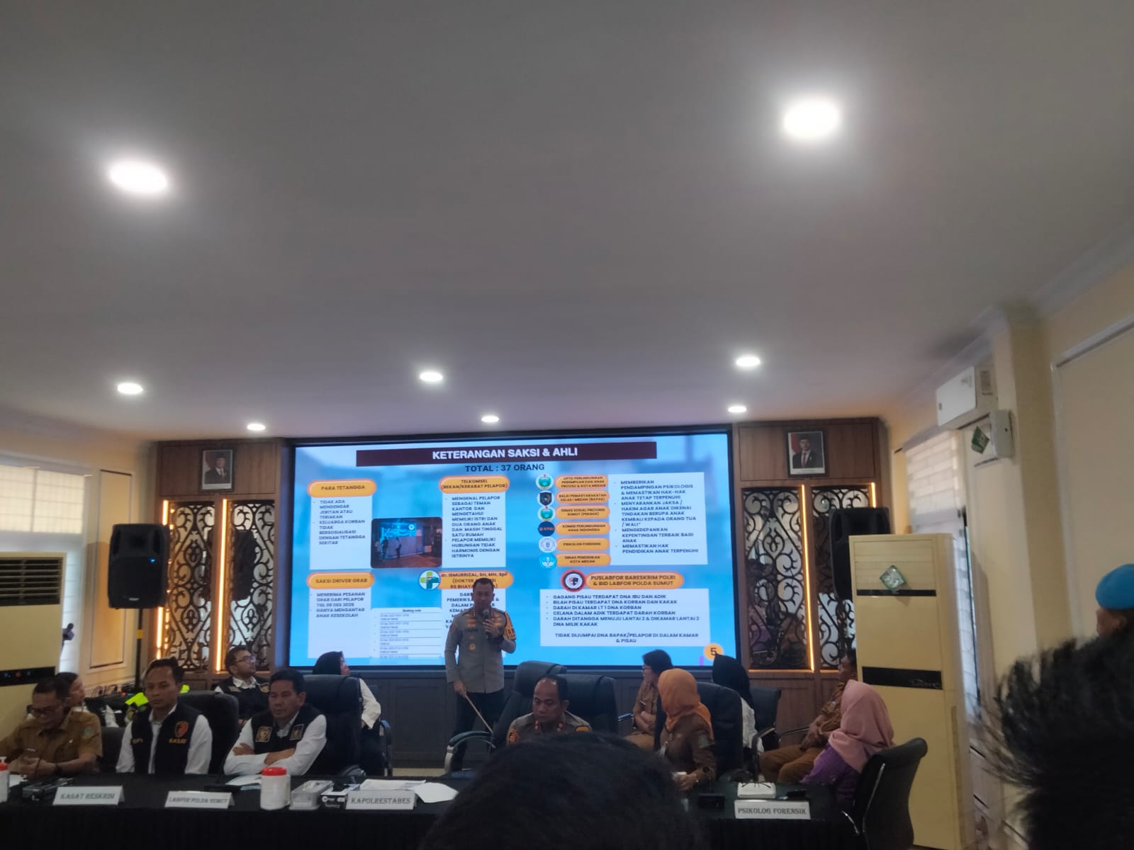Dihadiri oleh Kapolrestabes Medan, Kombes Pol Dr Jean Calvijn Simanjuntak SIK, didampingi Wakapolrestabes Medan, AKBP Rudi Silaen SIK, Kasat Reskrim, AKBP Bayu Putro SIK, Kasat Intel, Kompol Lengkap Suherman Siregar, Labfor Polda Sumut, Psikologi Forensik, dan Kepala Dinas P3KSU.